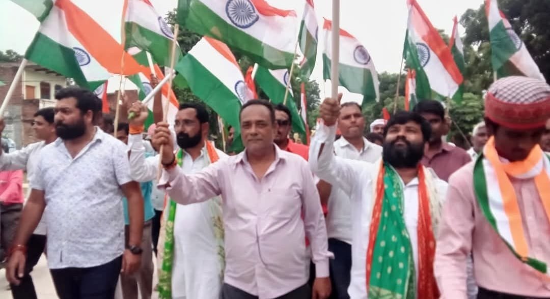 शहीदों के सम्मान में निकाला गया तिरंगा यात्रा।